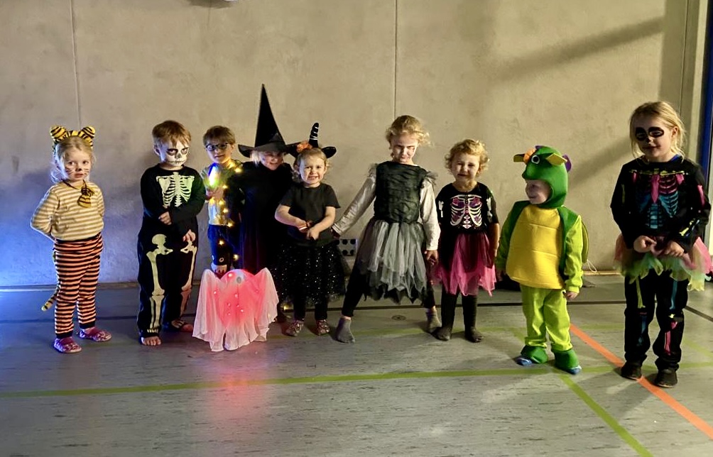 „Süßes oder Saures?“ Zu Halloween ist es mittlerweile auch hier in Deutschland ein traditioneller Brauch, bei dem Kinder verkleidet von Haus zu Haus ziehen um Süßigkeiten einzusammeln. So trafen sich am 31.10.23 einige Eltern mit gruselig verkleideten Kindern in der Turnhalle zum traditionellen Halloween-Turnen und um von Turnstation zu Station in dunkler und geschmückter Halle…